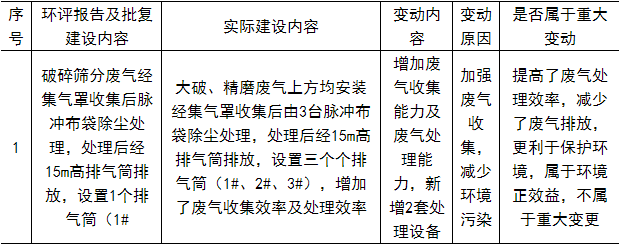 對(duì)比項(xiàng)目實(shí)際建設(shè)內(nèi)容和環(huán)評(píng)報(bào)告及批復(fù)文件,項(xiàng)目變動(dòng)情況如下: